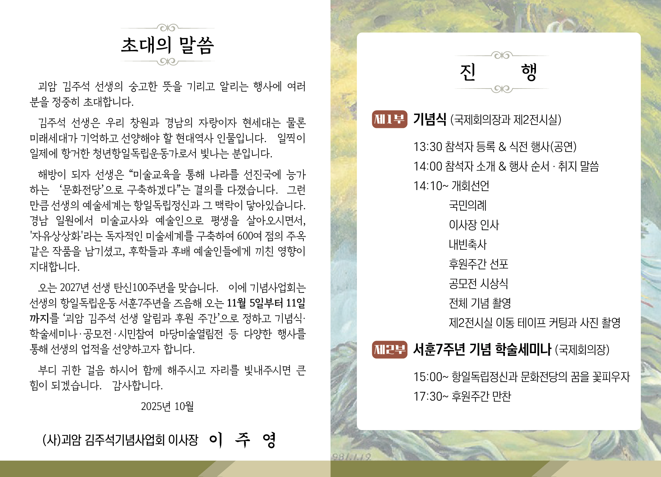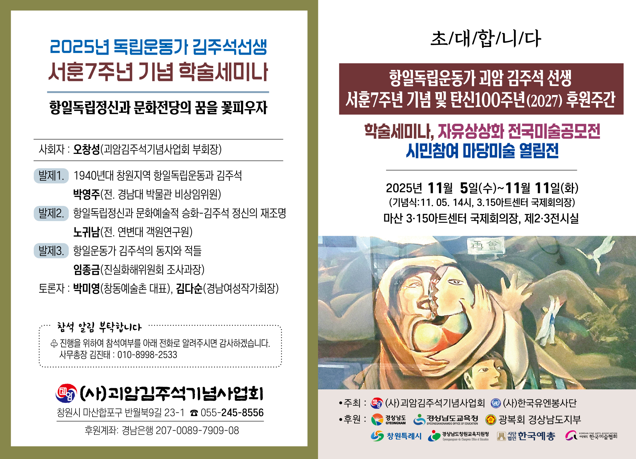 문의 : (사)괴암김주석기념사업회 ☎ 055-245-8556